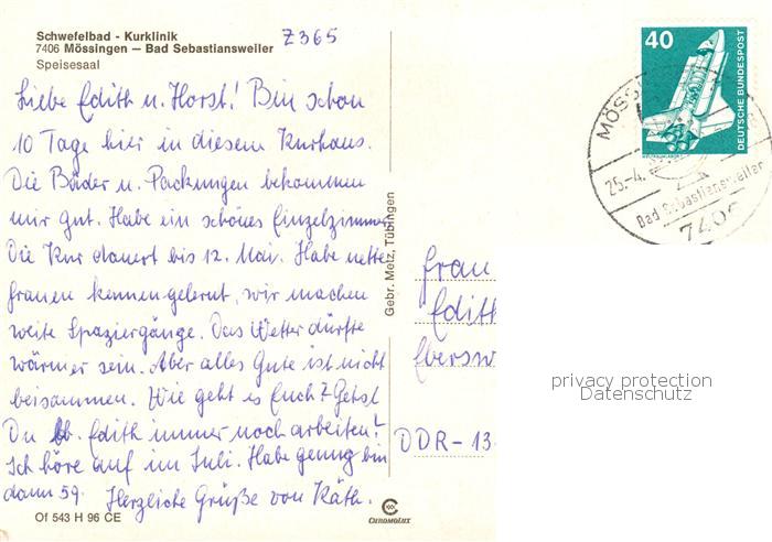 73859037 alte Postkarte Moessingen Schwefelbad Kurklinik Speisesaal postalisch gelaufen Erhaltung siehe scans [WerneD78] KatCode: 11110008416025