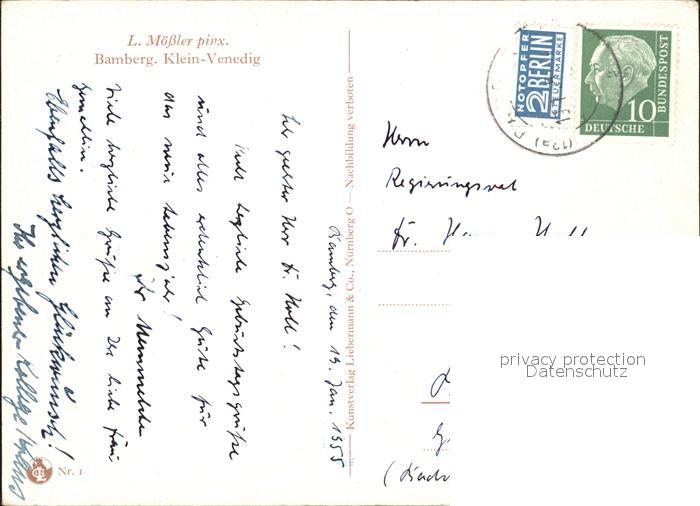 alte Postkarte Moessler L. Bamberg Klein-Venedig postalisch gelaufen Erhaltung siehe scans