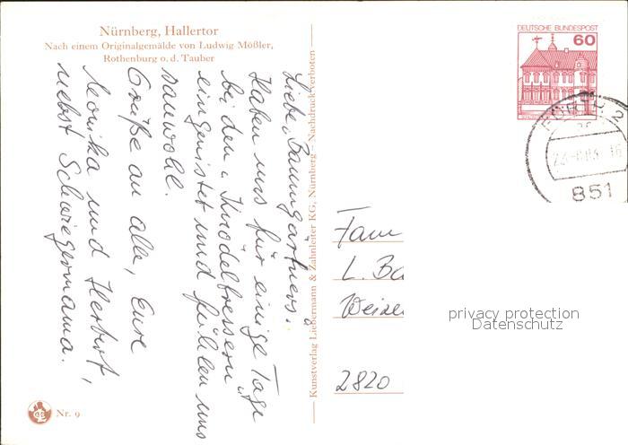 alte Postkarte Moessler L. Hallertor Rothenburg ob der Tauber postalisch gelaufen Erhaltung siehe scans