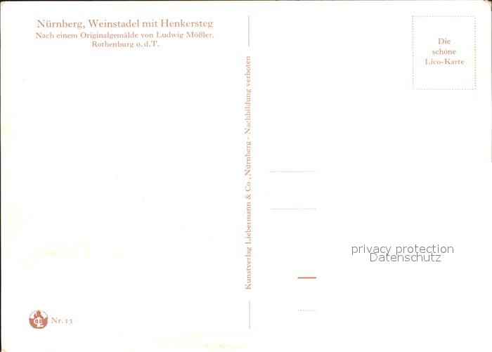 Moessler L. Nuernberg Weinstadel Henkersteg postalisch nicht gelaufen Erhaltung siehe scans