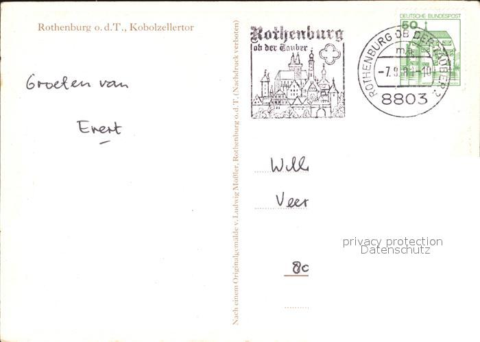 alte Postkarte Moessler L. Rothenburg ob der Tauber Kobolzellertor Postkutsche postalisch gelaufen Erhaltung siehe scans