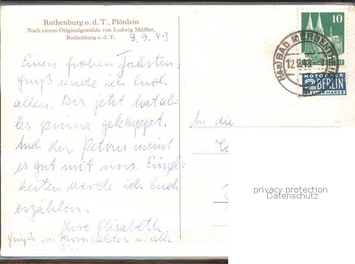 alte Postkarte Moessler L. Rothenburg ob der Tauber Ploenlein postalisch gelaufen Erhaltung siehe scans