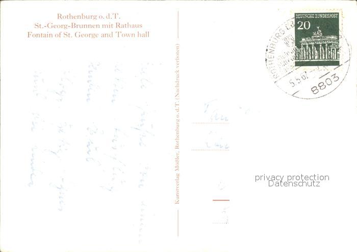 alte Postkarte Moessler L. Rothenburg ob der Tauber St.-Georg-Brunnen postalisch gelaufen Erhaltung siehe scans
