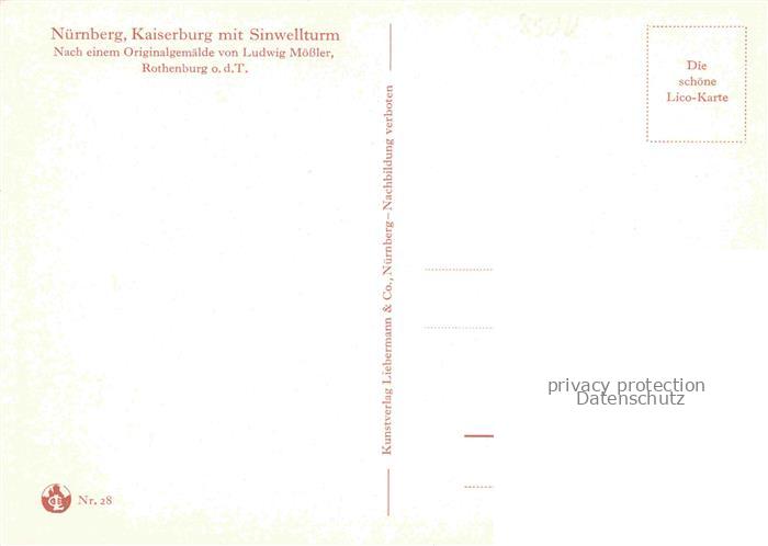 74050607 MoessLER Ludwig Moessler Ludwig (1902-1949) Kuenstlerkarte Nuernberg Kaiserburg Sinwellturm postalisch nicht gelaufen Erhaltung siehe scans [SanaeD93] KatCode: 22240000001900