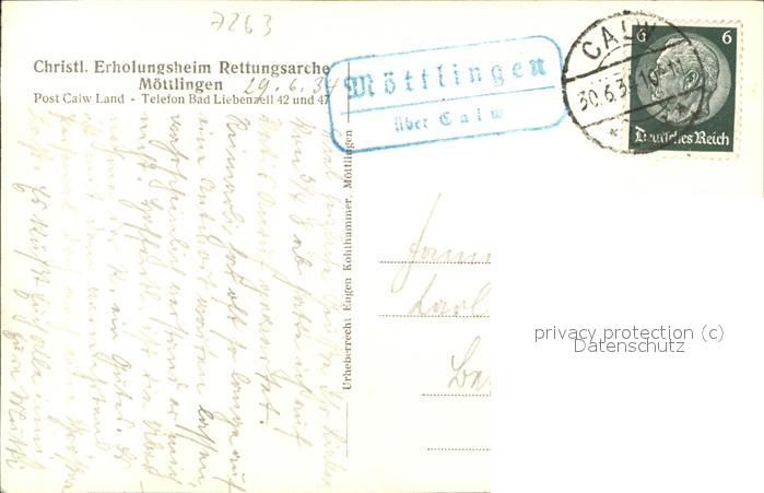 71510547 alte Postkarte Moettlingen Christl Erholungsheim Rettungsarche postalisch gelaufen Erhaltung siehe scans KatCode: 11110008235008