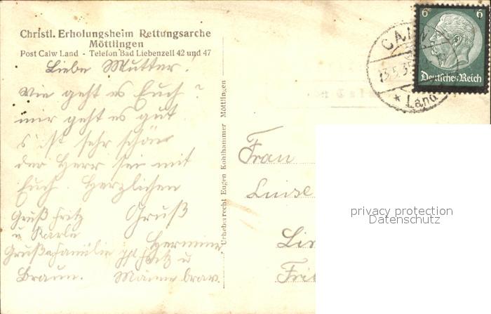 31727471 alte Postkarte Moettlingen Christl. Erholungsheim Rettungsarche postalisch gelaufen Erhaltung siehe scans KatCode: 11110008235008