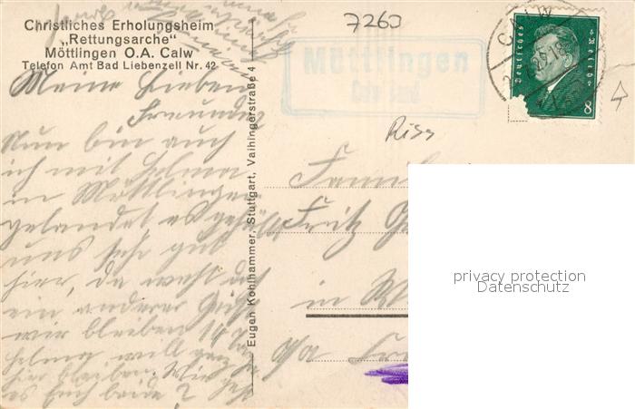 43189082 alte Postkarte Moettlingen Christliches Erholungsheim Rettungsarche postalisch gelaufen Erhaltung siehe scans [FriedD77] KatCode: 11110008235008