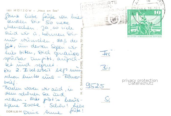 73086597 alte Postkarte Moetzow Haus am See postalisch gelaufen Erhaltung siehe scans [NatalD47] KatCode: 11110012069019