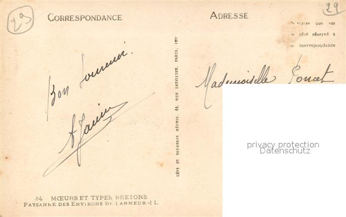 13538006 Moeurs-Verdey Types Bretons Paysanne des Environs de lanmeur postalisch nicht gelaufen Erhaltung siehe scans [WerneD78] KatCode: 11170051251230