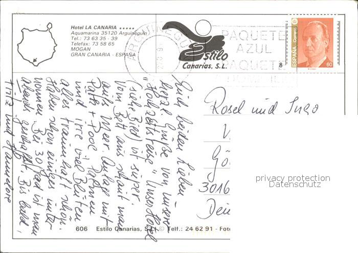 old postcard Mogan Hotel La Canaria postalisch gelaufen Erhaltung siehe scans
