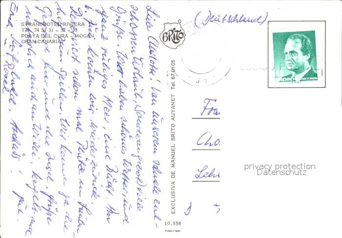 old postcard Mogan Playa del Cura Strandhotel Riviera postalisch gelaufen Erhaltung siehe scans