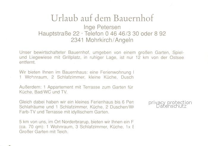 73086802 Mohrkirch Ferienbauernhof Petersen postalisch nicht gelaufen Werbekarte (keine Postkarte) Erhaltung siehe scans [KathaD81] KatCode: 11110001059060