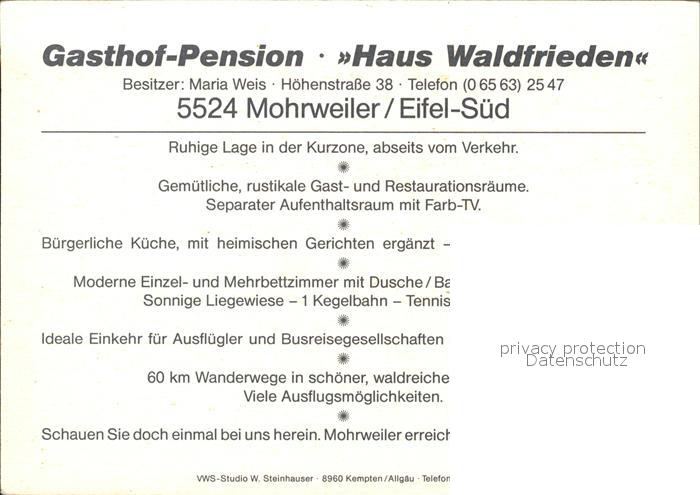71939836 Mohrweiler Gasthof Haus Waldfrieden postalisch nicht gelaufen Werbekarte (keine Postkarte) Erhaltung siehe scans KatCode: 11110007232075