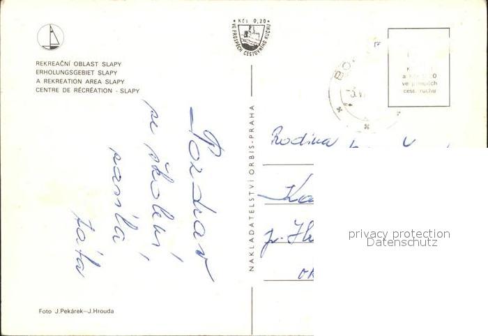 old postcard Moldau Erholungsgebiet Slapy Hotel Na Choline postalisch gelaufen Erhaltung siehe scans