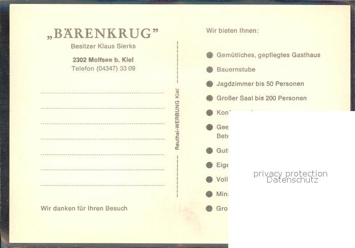 71838872 Molfsee Gasthaus Baerenkrug postalisch nicht gelaufen Werbekarte (keine Postkarte) Erhaltung siehe scans KatCode: 11110001058107