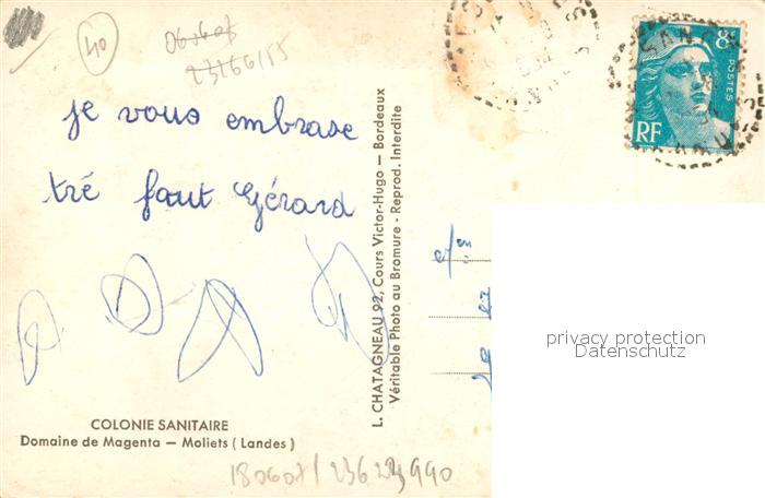 13582774 Moliets-et-Maa Colonie Sanitaire Domaine de Magenta postalisch gelaufen Erhaltung siehe scans [PaolaD17] carte postale Paol Katcode 11170040140187