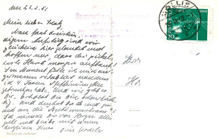 13920681 alte Postkarte Mollis GL Berggasthaus Frohnalpstock Wintersportplatz Alpen postalisch gelaufen Erhaltung siehe scans [FriedD77] KatCode: 11470090300896