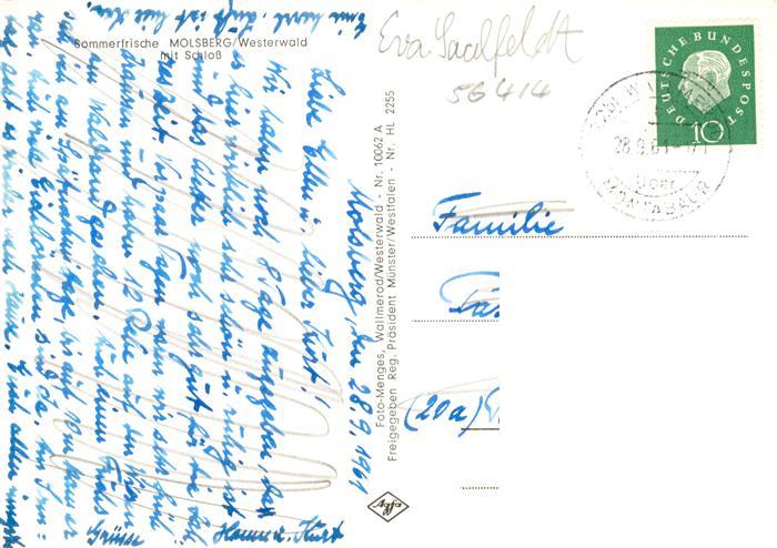 73869051 alte Postkarte Molsberg Westerwald Fliegeraufnahme mit Schloss postalisch gelaufen Erhaltung siehe scans [FriedD77] KatCode: 11110007143266