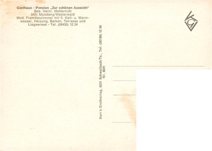 73898365 Molsberg Westerwald Gasthaus zur schoenen Aussicht postalisch nicht gelaufen Erhaltung siehe scans [WerneD78] KatCode: 11110007143266