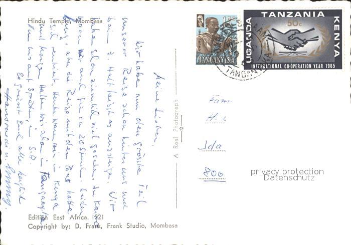 old postcard Mombasa Hindu Tempel postalisch gelaufen Erhaltung siehe scans