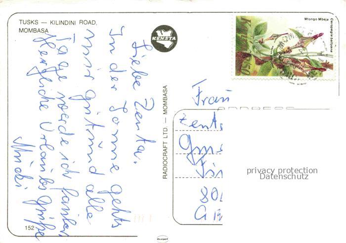 74116506 old postcard Mombasa Kenya Tusks Kilindini Road postalisch gelaufen Erhaltung siehe scans [WerneD78] KatCode: 18210