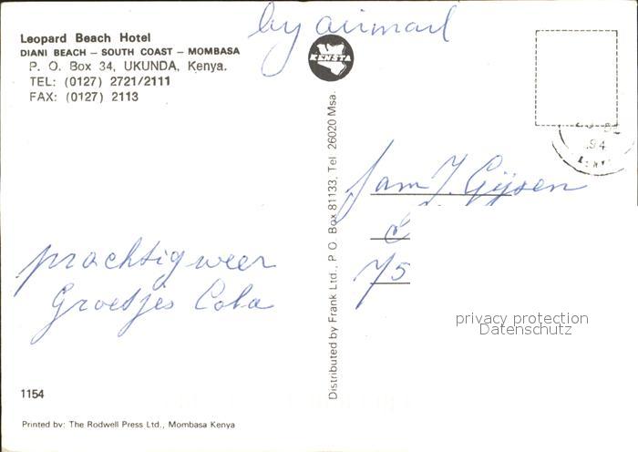 alte Postkarte Mombasa Leopard Beach Hotel postalisch gelaufen Erhaltung siehe scans