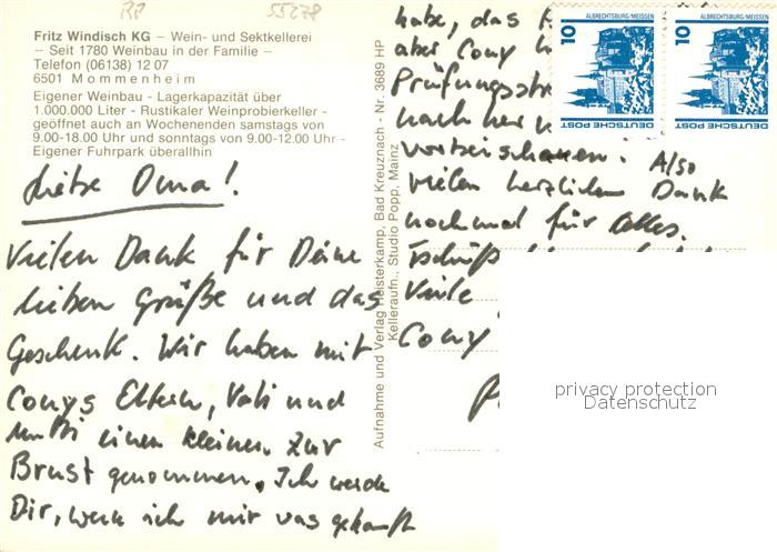 73651943 alte Postkarte Mommenheim Mainz Fritz Windisch KG Wein und Sektkellerei Gastraeume postalisch gelaufen Erhaltung siehe scans [WerneD78] KatCode: 11110007339037