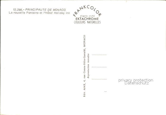 Monaco Fontaine Hotel Holiday Inn Principaute de Monaco postalisch nicht gelaufen Erhaltung siehe scans