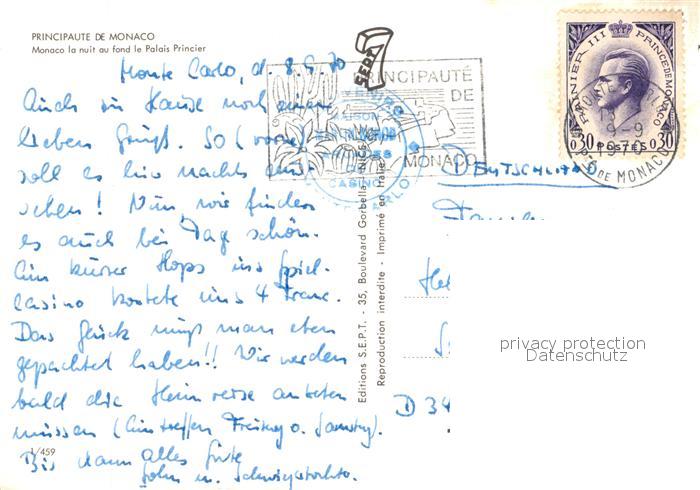 old postcard Monaco la nuit au fond le Palais Princier postalisch gelaufen Erhaltung siehe scans [WerneD78]