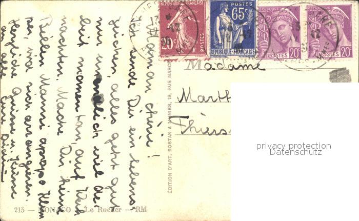 old postcard Monaco Le Rocher postalisch gelaufen Erhaltung siehe scans