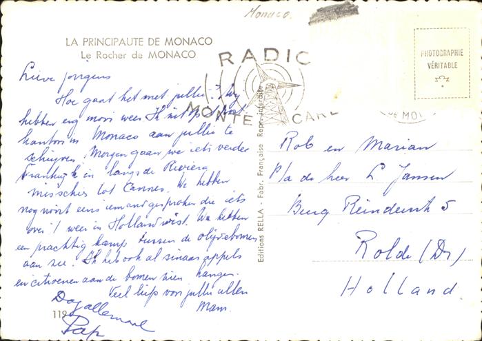old postcard Monaco Le Rocher postalisch gelaufen gute Erhaltung