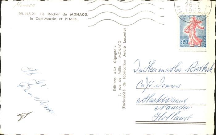 old postcard Monaco Le Rocher Cap Martin et Italie postalisch gelaufen gute Erhaltung