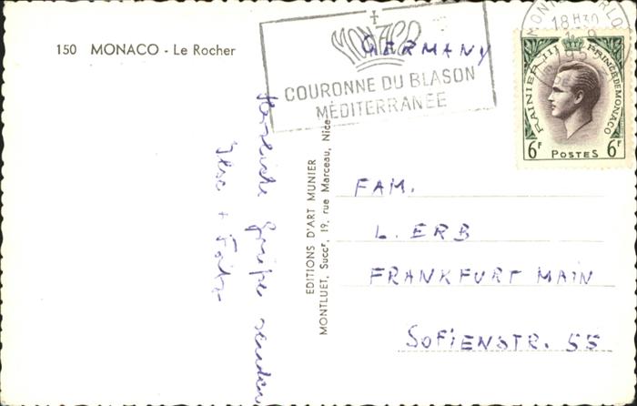 old postcard Monaco Le Rocher Fliegeraufnahme postalisch gelaufen