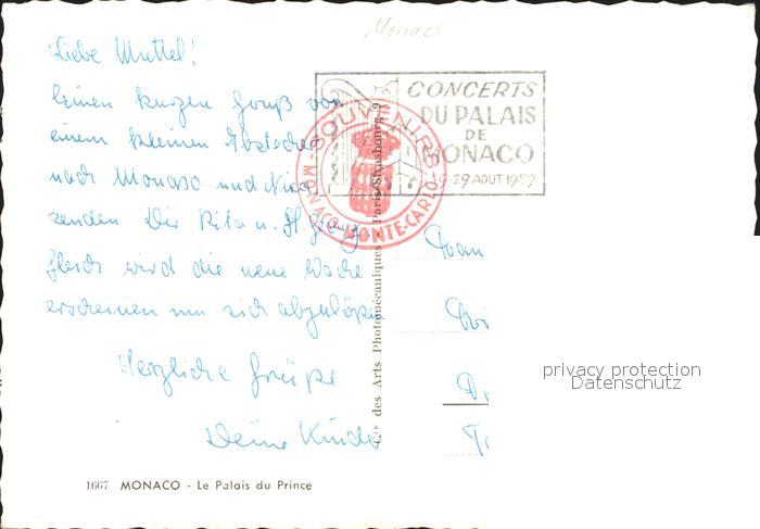 old postcard Monaco Palais du Prince postalisch gelaufen Erhaltung siehe scans