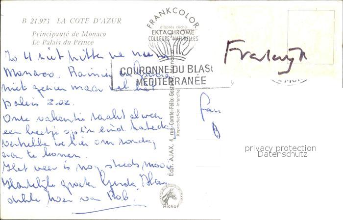 old postcard Monaco Palais du Prince postalisch gelaufen Erhaltung siehe scans