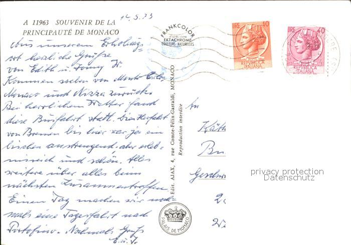 old postcard Monaco Palast Hafen Gesamtansicht postalisch gelaufen Erhaltung siehe scans