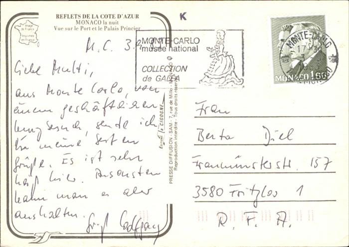 old postcard Monaco Port Palais Princier postalisch gelaufen