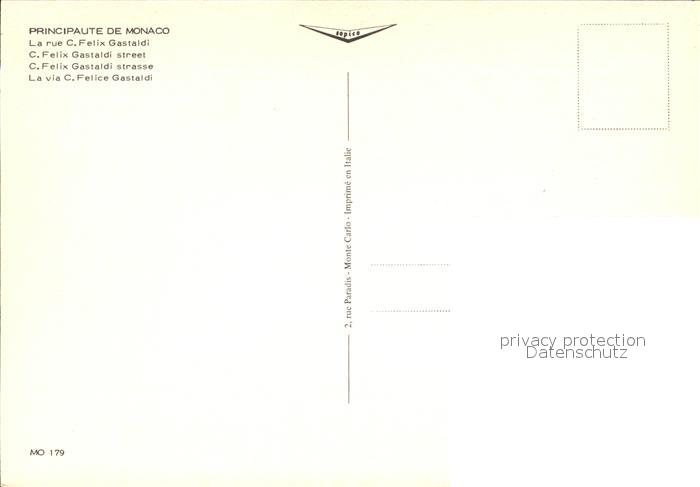 Monaco Rue C Felix Gastaldi de la Principaute postalisch nicht gelaufen Erhaltung siehe scans [FriedD77]