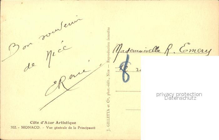 alte Postkarte Monaco Vue generale de la Principaute Cote d Azur postalisch gelaufen Erhaltung siehe scans