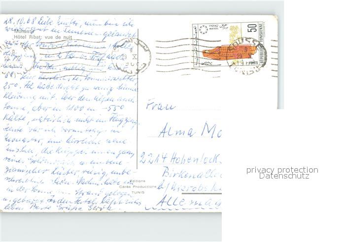 old postcard Monastir Hotel Ribat bei Nacht postalisch gelaufen Erhaltung siehe scans