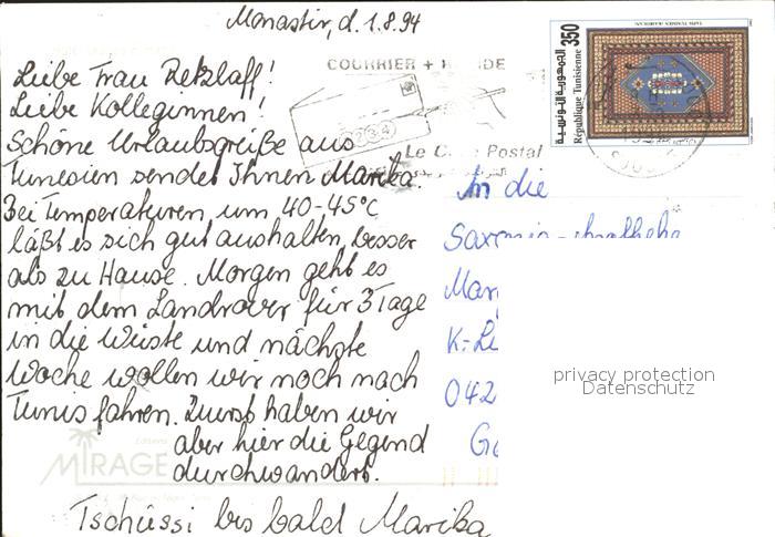 old postcard Monastir Hotel Skanes el Hana postalisch gelaufen Erhaltung siehe scans