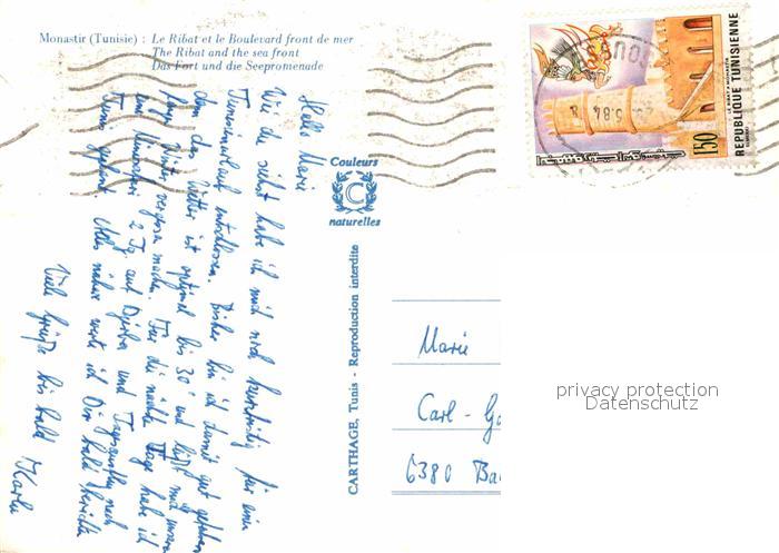 old postcard Monastir Le Ribat et Boulevard front de mer vue aerienne postalisch gelaufen Erhaltung siehe scans [FriedD77]
