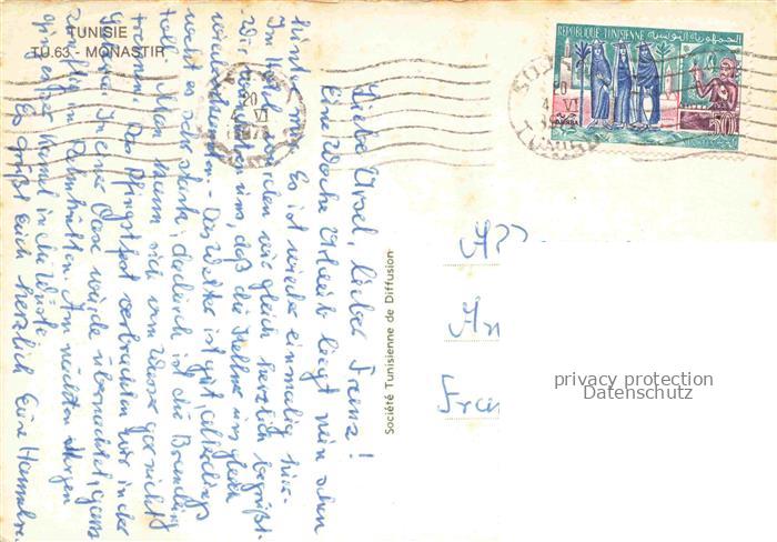 74010855 old postcard Monastir Tunesia Schloss postalisch gelaufen Erhaltung siehe scans [WerneD78] KatCode: 18520