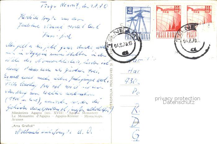 old postcard Monastirea Agapia Kloster postalisch gelaufen Erhaltung siehe scans