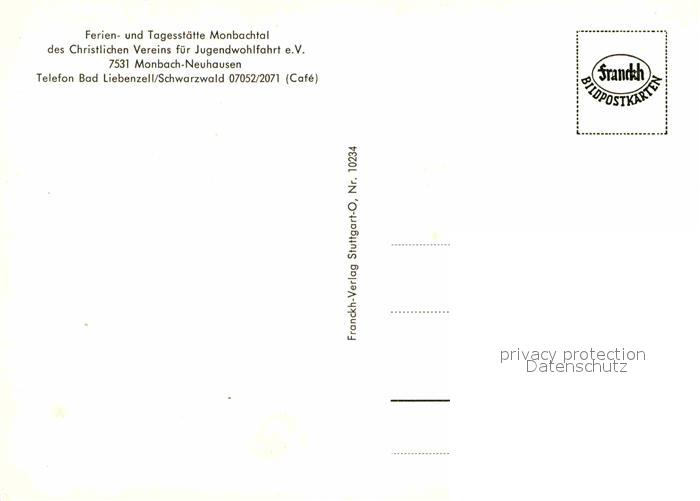 72681962 Monbach-Neuhausen Enzkreis Ferien und Tagesstaette des Christl Vereins fuer Jugendwohlfahrt postalisch nicht gelaufen Erhaltung siehe scans [WerneD78] KatCode: 11110008236044