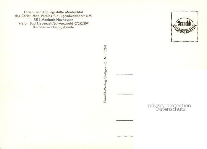 73087330 Monbach-Neuhausen Enzkreis Ferien- und Tagungsstaette Monbachtal Kurhaus postalisch nicht gelaufen Erhaltung siehe scans [PaolaD17] KatCode: 11110008236044