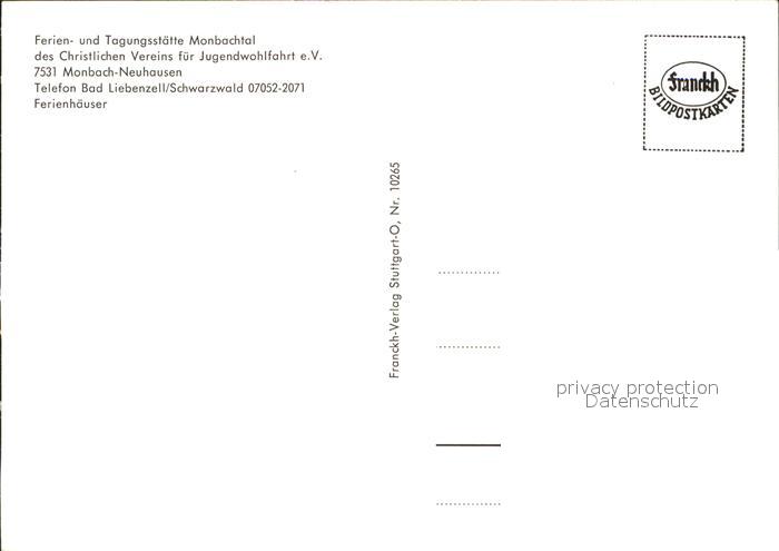 71909880 Monbach-Neuhausen Enzkreis Ferienhaeuser Christlichen Vereins Jugendwohlfahrt postalisch nicht gelaufen Erhaltung siehe scans KatCode: 11110008236044