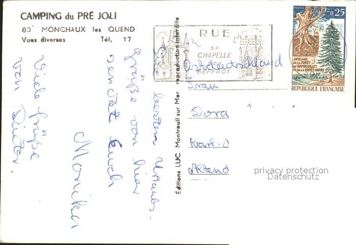 12039822 carte postale Monchaux les Quend Camping du Pre Joli postalisch gelaufen Erhaltung siehe scans KatCode: 11170080180649