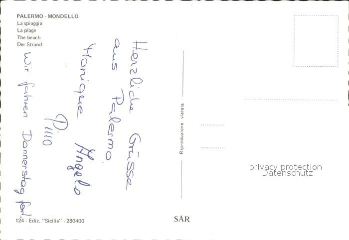 Mondello Spiaggia Strand postalisch nicht gelaufen Erhaltung siehe scans