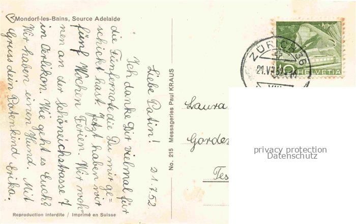 74047454 alte Postkarte Mondorf-les-Bains Bad Mondorf Luxembourg Source Adelaide postalisch gelaufen Erhaltung siehe scans [WerneD78] KatCode: 11300